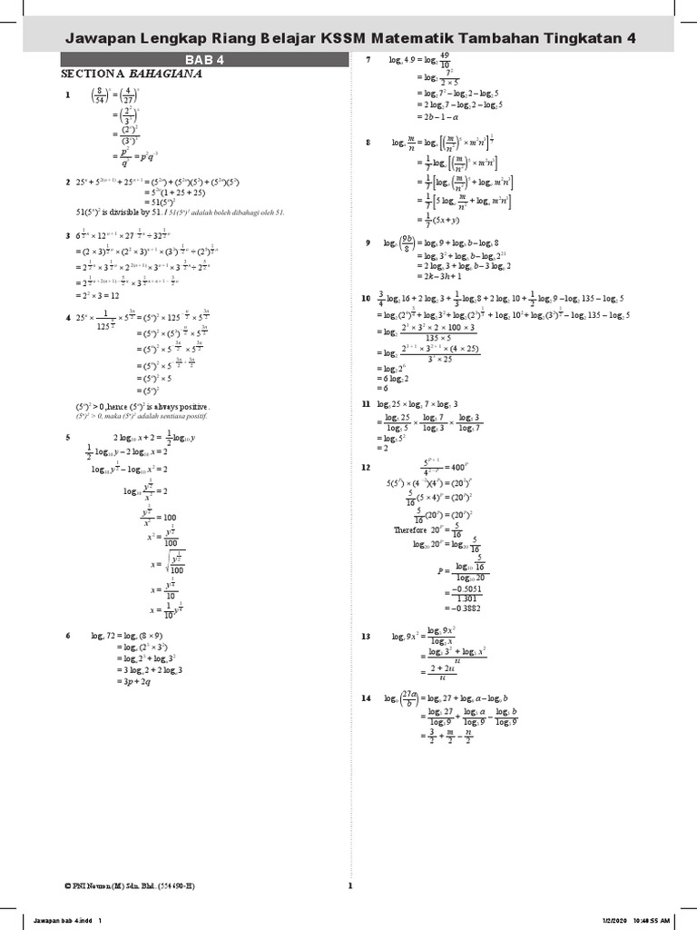 Jawapan Lengkap Rb Mate Tmbhn Tkt 4 Bab 4 Pdf Special Functions Teaching Mathematics